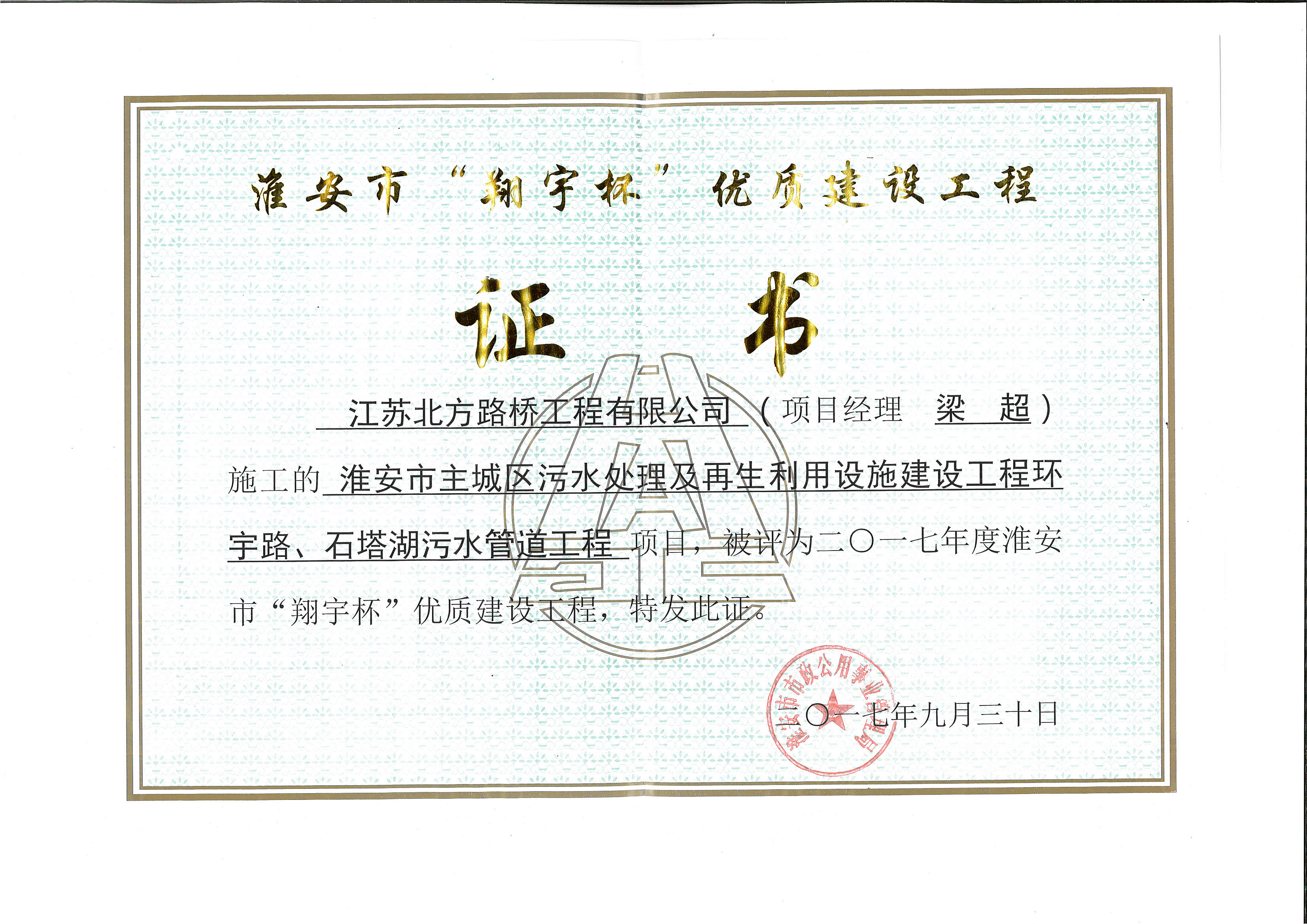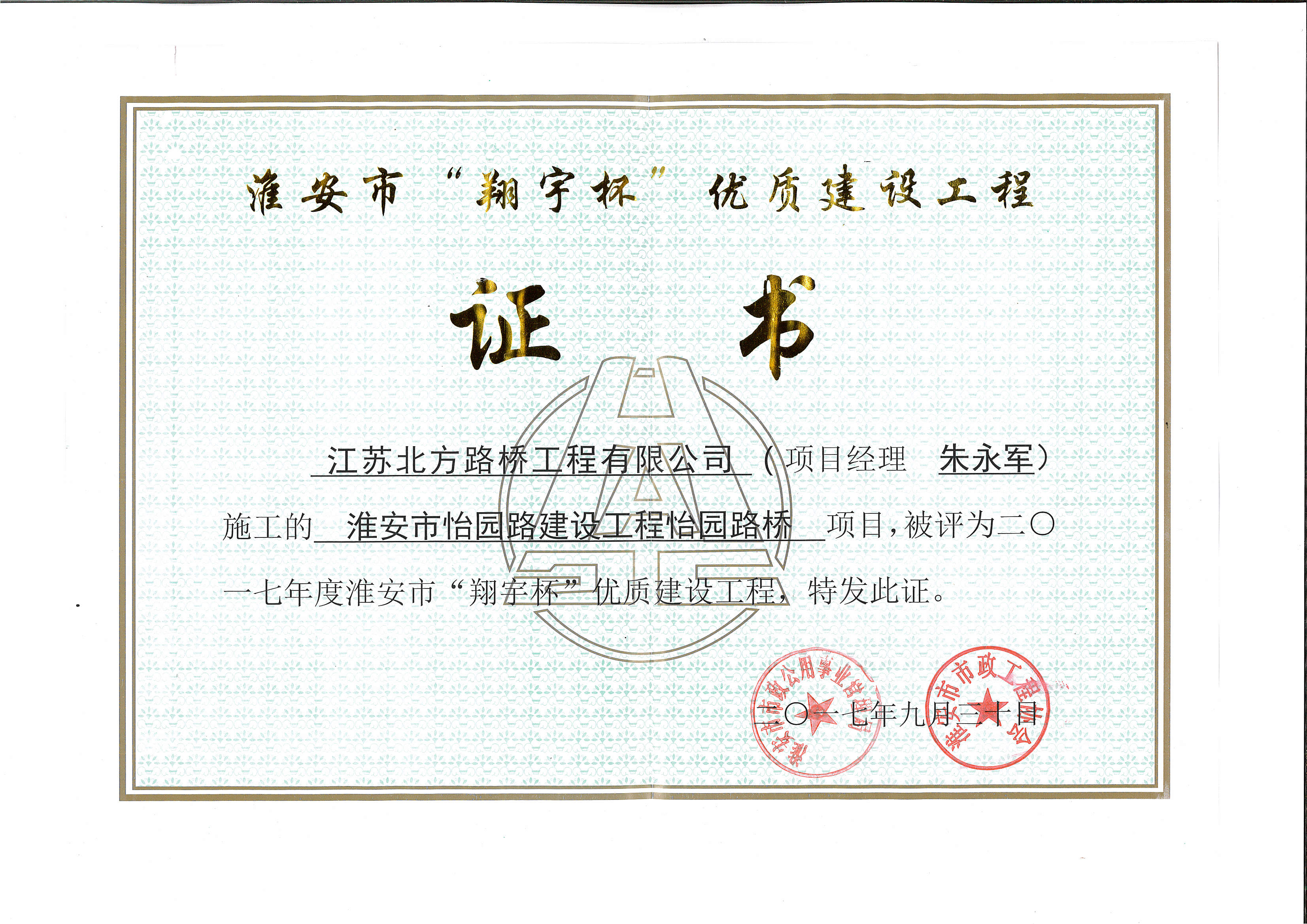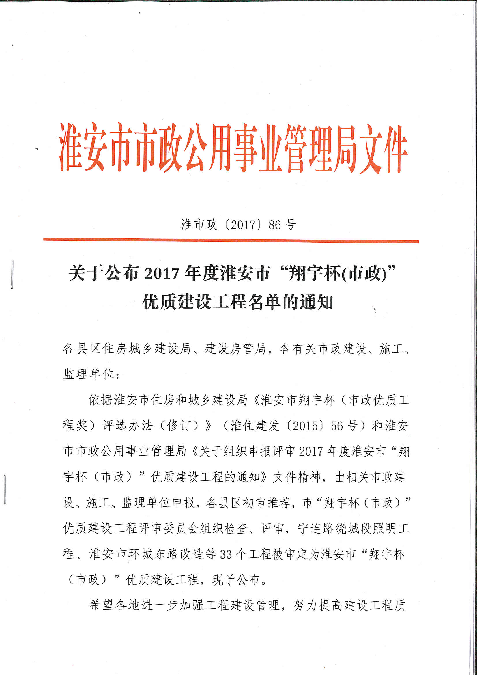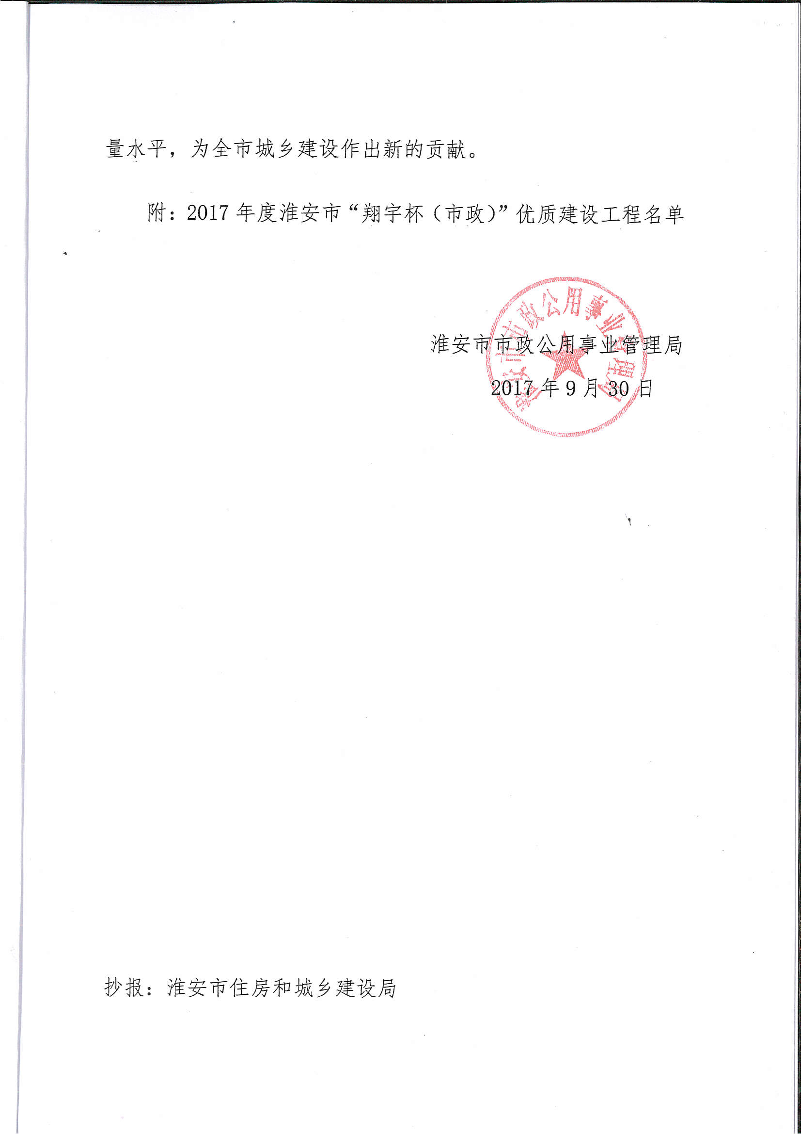 我公司两个工程荣获2017市“翔宇杯(市政)”称号!!!