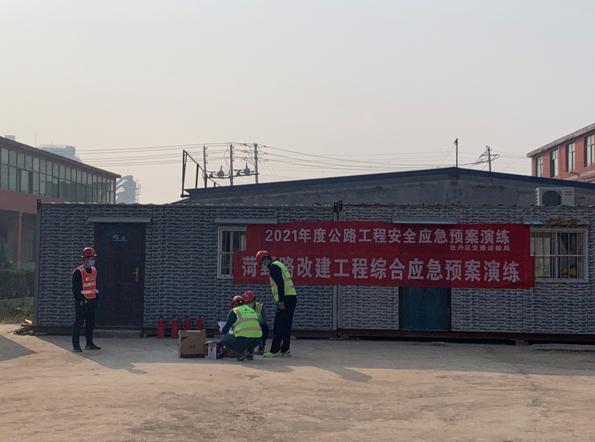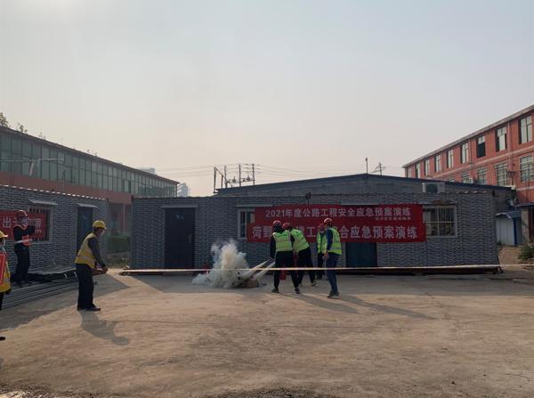 近日,菏鄄路改建工程安全综合应急预案现场演练正在如火如荼地进行。整个演练过程,职工防护用品穿戴整齐,严格按照演练标准规范操作,保证了此次应急预案演练的顺利进行。参加现场演练的员工面对突发事件能够正确做出判断,牢牢把握住“快、准、稳”,将所学理论知识灵活运用实践中。我公司高度重视对各项应急预案现场演练,保证每一名员工都熟悉演练操作步骤,演练过程扎实牢固,不走过场,通过现场演练增强了员工日常生产的安全意识,进一步提高了员工对突发事件的自救能力和处理能力,为安全生产奠定了良好的基础。