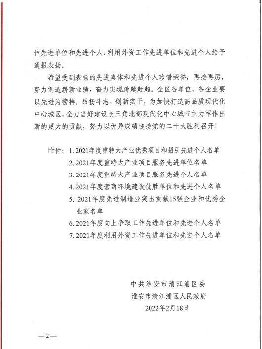 米兰app登录入口董事长杨龙被中共淮安市清江浦区委、淮安市清江浦区人民政府授予“2021年度优秀企业家”光荣称号。