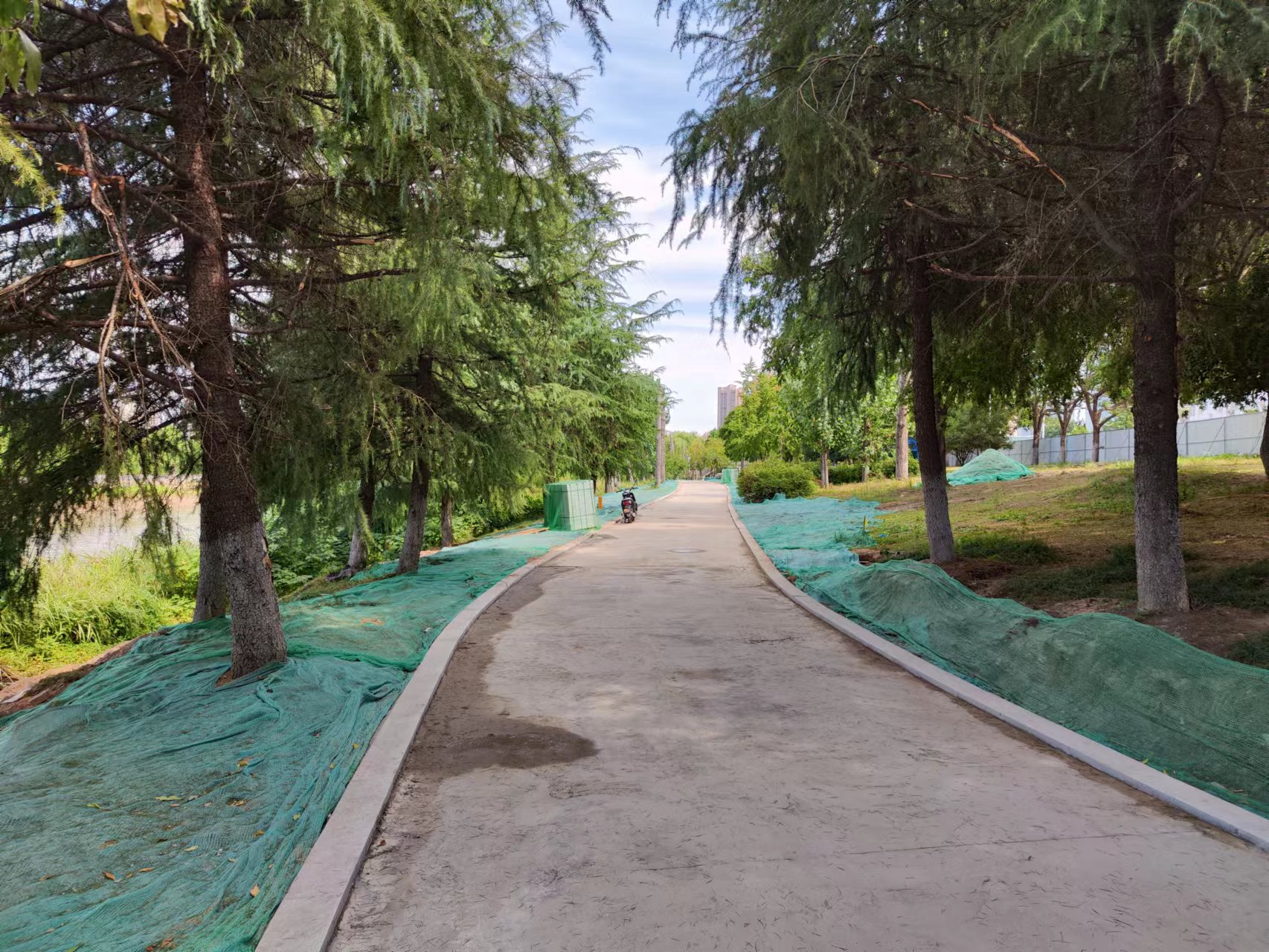 干净整洁的古黄河生态休闲带开放连通工程施工现场
