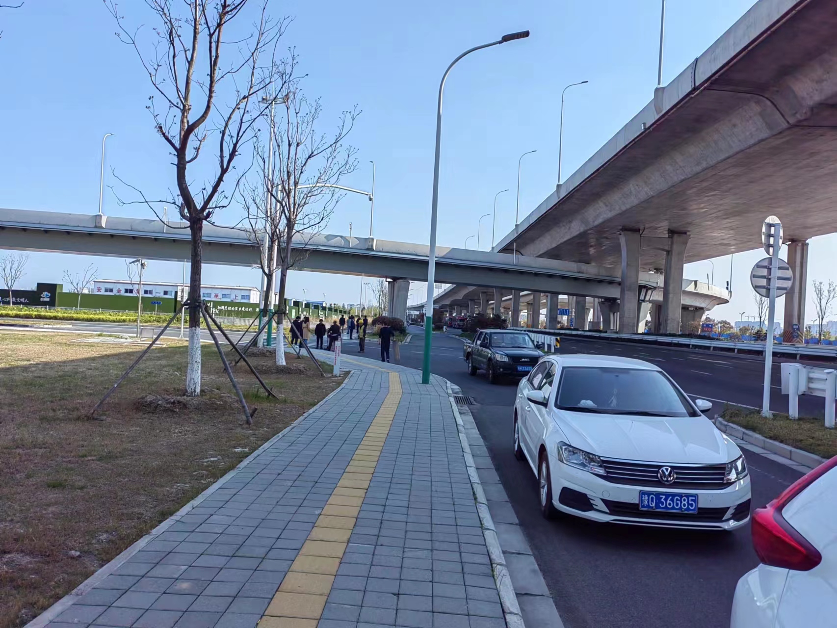 我公司申报的淮安高铁商务区丁庄路(宏盛路-S237高架快速路)位于淮安市中心城区东部,路线起于规划宏盛路平面交叉口,向东延伸,与城东路、花园路、北一路、北二路、站前路、北三路、高铁路交叉,止于S237高架快速路。路线总体呈东西走向,全长 1.481km。丁庄路在整个工程中采用了新材料、新工艺的应用,在路面检查井口安装了新型防沉降井盖,并与路面摊铺同时进行,施工效果良好。还购进了3000米采用新型工艺和进口设备压制的高品质路缘石,从而提高原材料和道路外观质量。