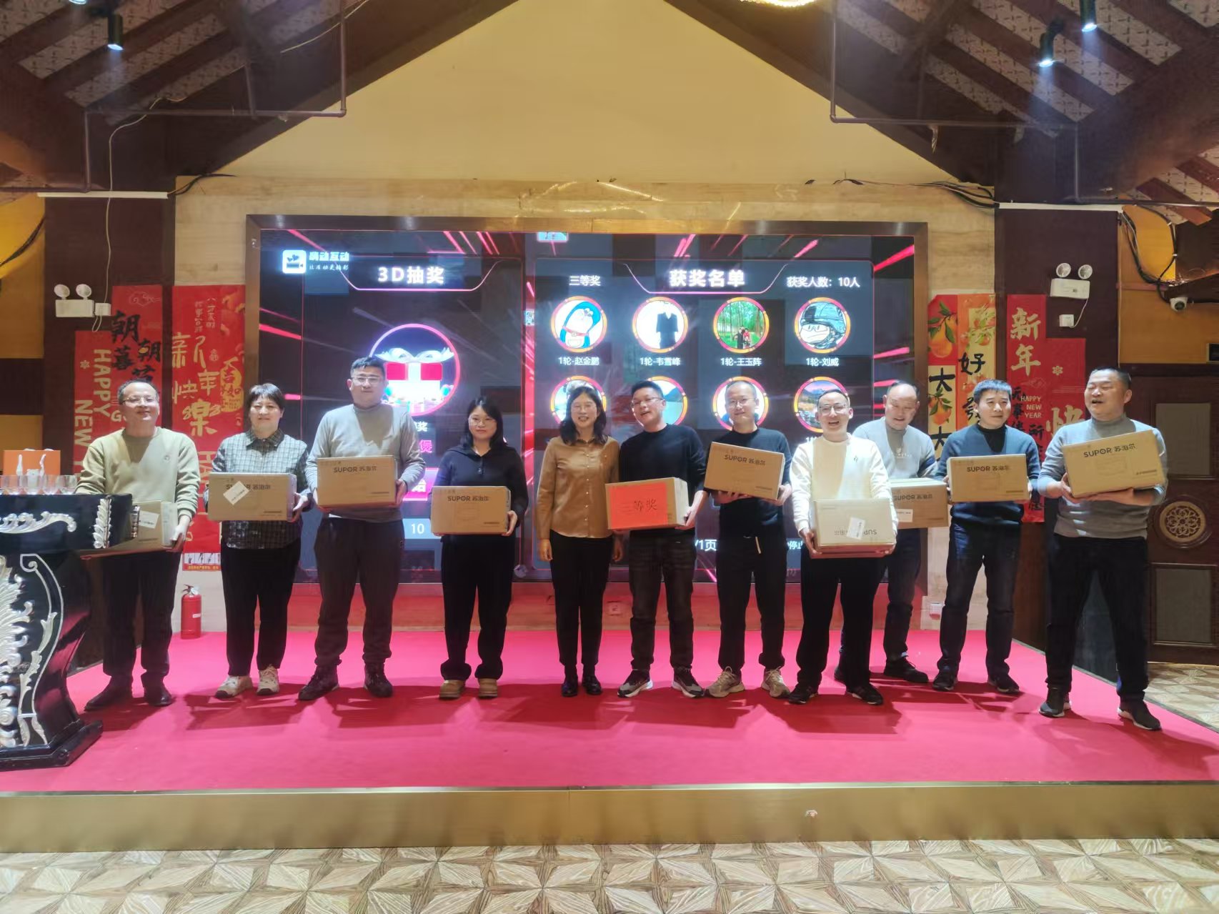 年会上公司还精心准备的丰厚奖品,件件都是生活中离不开的小家电和实用好物,每一件都承载着公司对员工满满的关怀与鼓励。随着主持人一次次念出中奖名单,获奖的幸运儿们带着激动与喜悦走上舞台,他们脸上洋溢的笑容成为了此刻最美的画面。