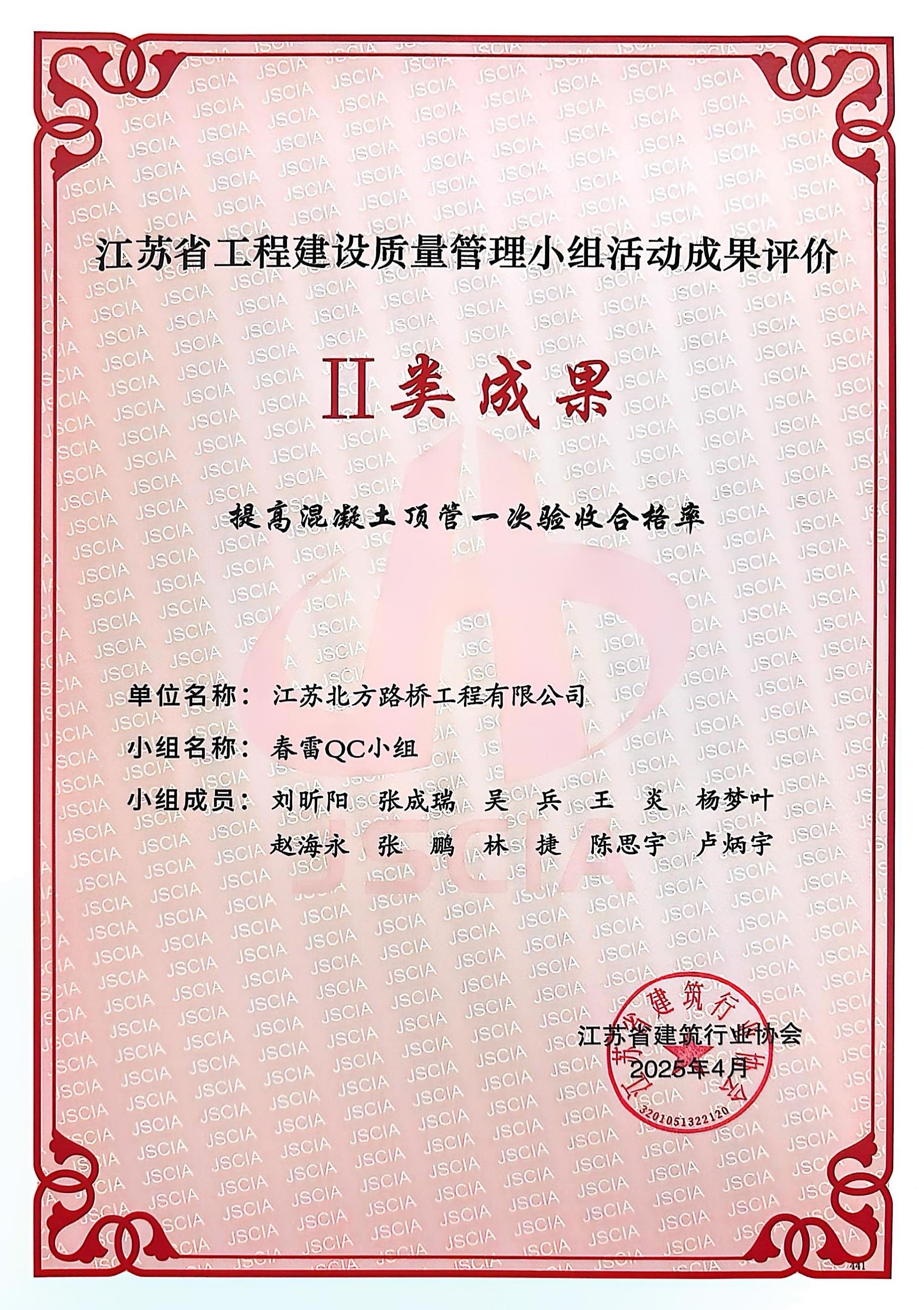 江苏省工程建设质量管理小组活动成果评价二类成果