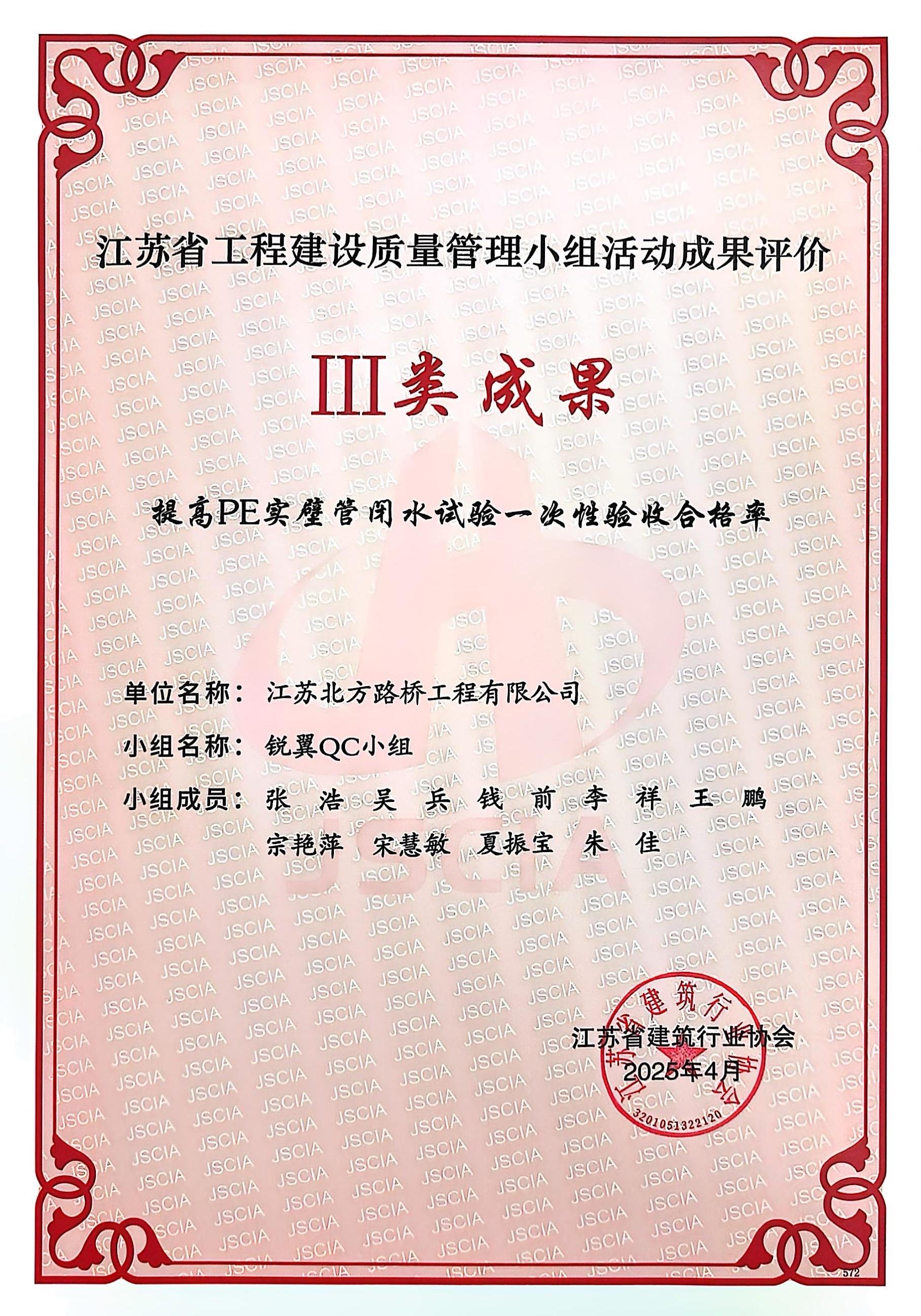 江苏省工程建设质量管理小组活动成果评价三类成果